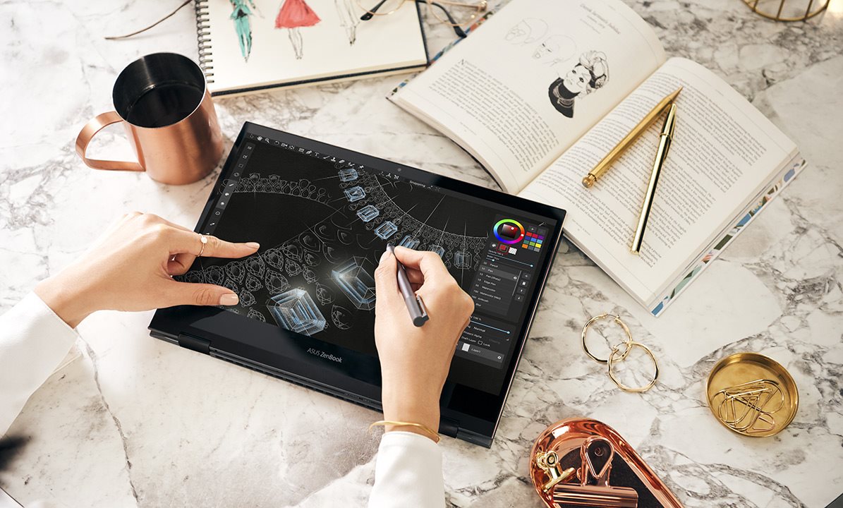 Úžasně tenký, neuvěřitelně lehký a přitom výkonný ASUS ZenBook Flip 13 UX371EA s 360° otočnou dotykovou obrazovkou má zcela nový design, který kombinuje dokonalou přenositelnost s nejvyšší všestranností. Může fungovat jako stylový notebook, nebo praktický tablet, nebo cokoliv mezi tím. Zvolte režim jaký potřebujete a pracujte rychle a kreativně na ASUS ZenBooku Flip 13 UX371EA.
